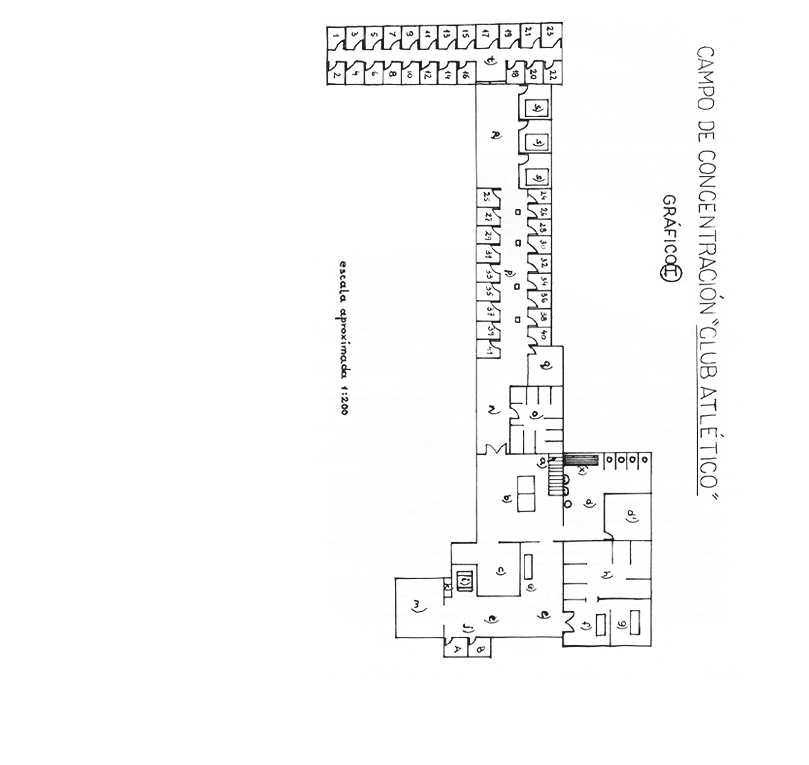Este conjunto de planos corresponde a diversas representaciones del edificio. En primer lugar, se incluye el croquis del centro clandestino de detención presentado por Horacio Cid de la Paz y Oscar Alfredo González en su declaración frente a Amnistía Internacional.